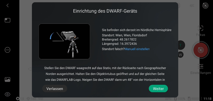 - Dwarflab App mag geschlossen werden, das Dwarf arbeitet weiter