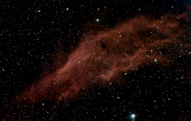 Erste Nacht mit dem (damals noch mäßig montierten) Dwarf: Um Trump zu ärgern, stahl ich dem Nordamerika-Nebel bei der Bildbearbeitung die Sterne. Man beachte den Golf von MEXIKO