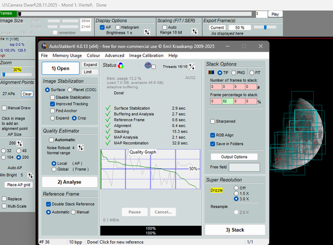 - Diese Bilder in AutoStakkert ziehen