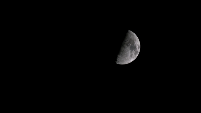 - Wenn augenscheinlich korrekt belichtet wird, Mond knapp links der Bildmitte platzieren