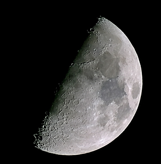 Tagsüber ist das Seeing auf meinem Balkon oft grottenschlecht. Vermutlich sorgt die drei Stock hohe weiße Hauswand im Sonnenschein für eine Thermik, die Segelfliegern das Herz höher schlagen ließe. Astronomen nicht. Nachts ist es besser, wie das folgende Mondfoto zeigt. Hier mein detaillierter Workflow für Dwarf-Mondfotos.