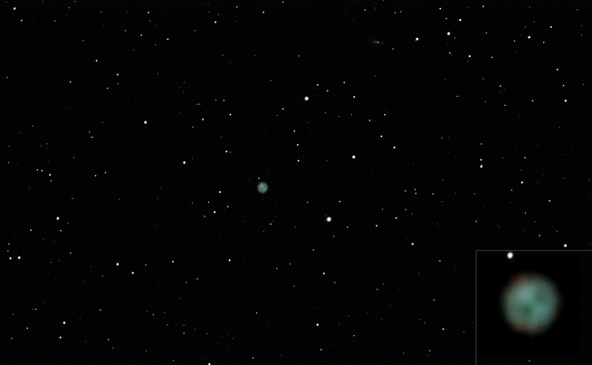 M97 (nahe Bildmitte) und M108 (r.o.) - von Stellar Studio automatisch gestackt und virtuell bearbeitet. Kontrast und Hintergrundschwärze wurden von mir manuell verstärkt