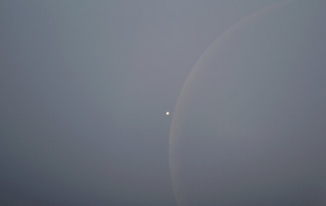 Der Mond bleibt am Himmel am weitesten zurück. Daher gerät oft ein Stern oder ein Planet - hier ist es die Venus im September 2024 - unter seinen Rand